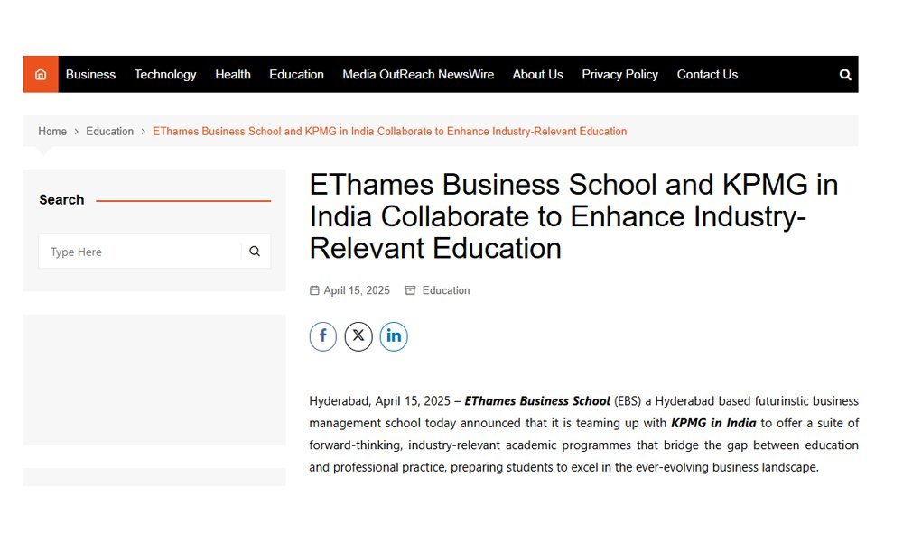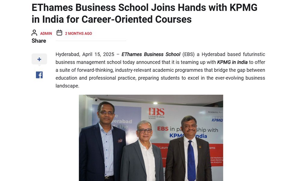 EThames Business School (EBS) a Hyderabad based futurinstic business management school today announced that it is teaming up with KPMG in India to offer a suite of forward-thinking…