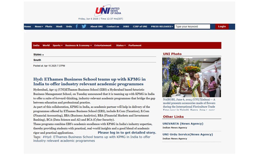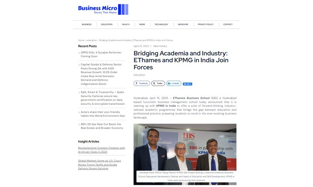 EThames Business School and KPMG in India Collaborate to Enhance Industry-Relevant Education