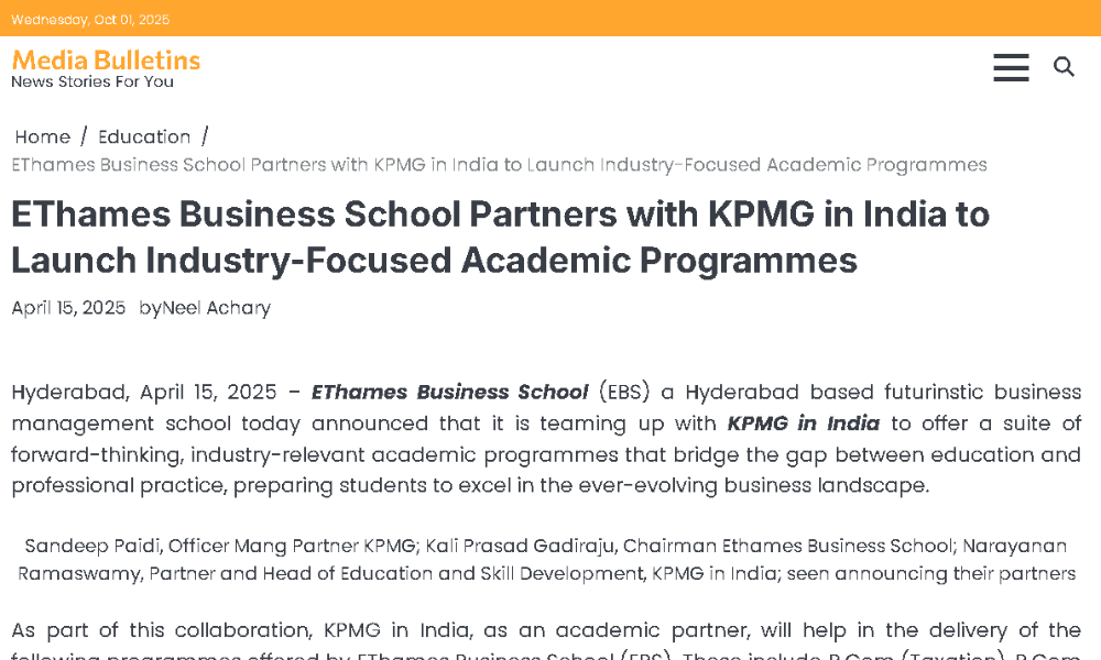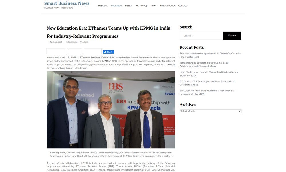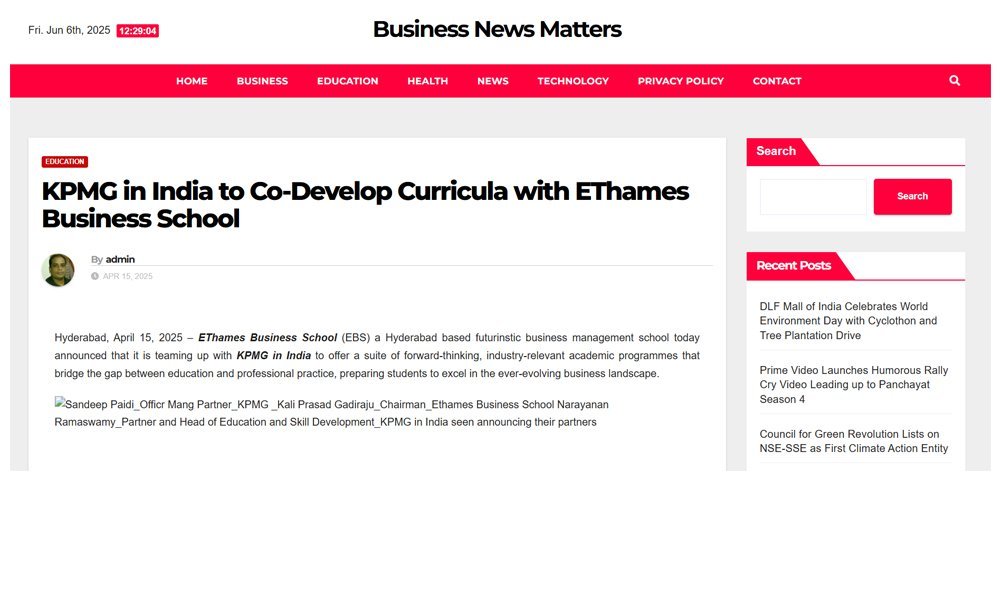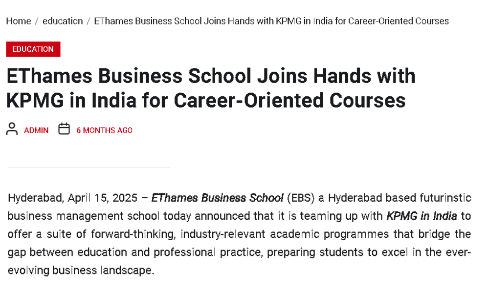 EThames Business School Joins Hands with KPMG in India for Career-Oriented Courses